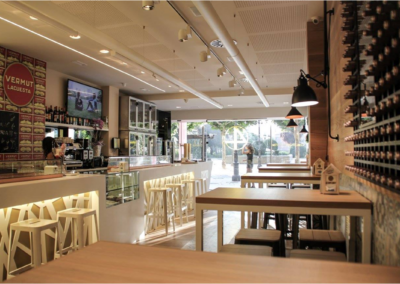 A la hora del diseño se tuvieron en cuenta las necesidades del bar: conseguir un máximo aprovechamiento de la luz natural y mantener un ambiente al nivel de los mejores centros culinarios.