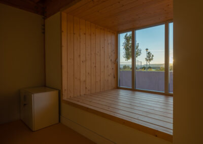 A destacar la forma «pedagógica» y el juego de construcción que forman los cubos de colores de la fachada.