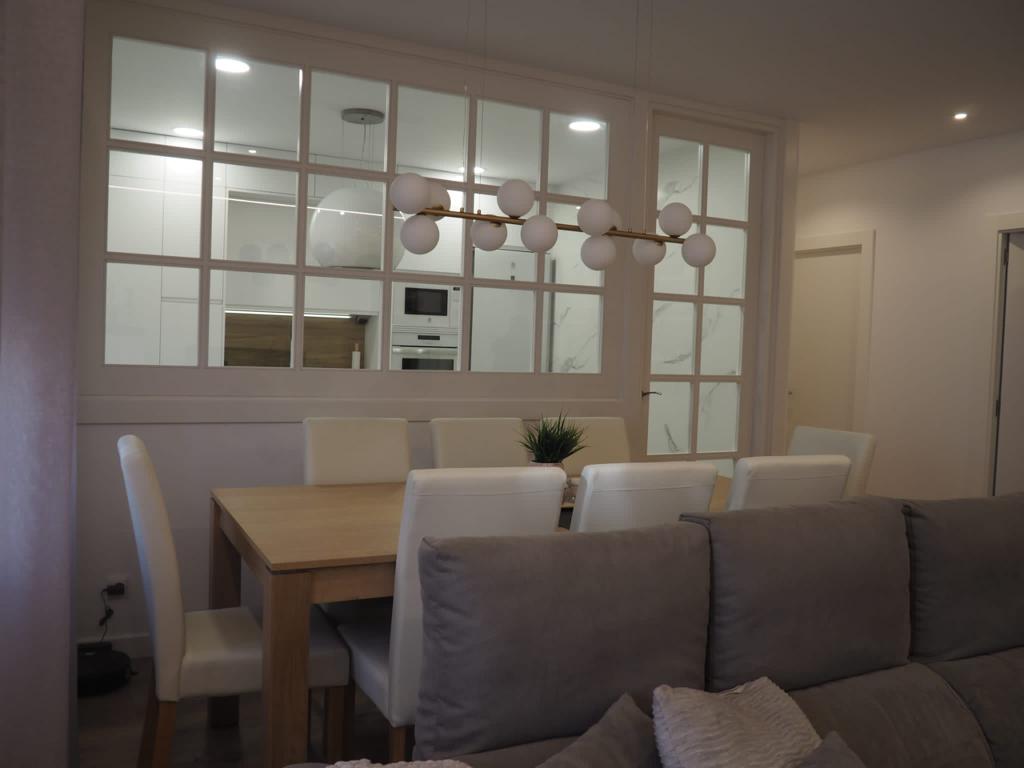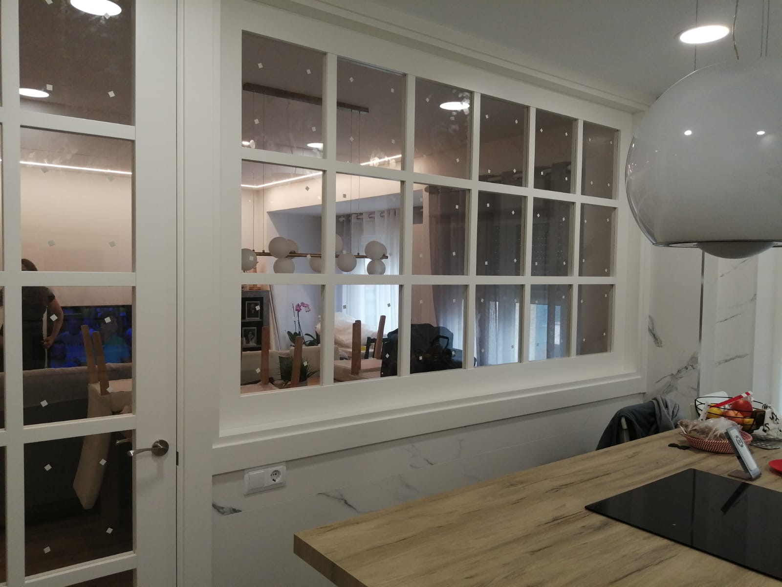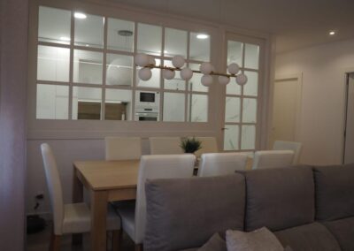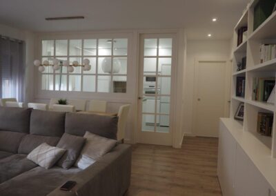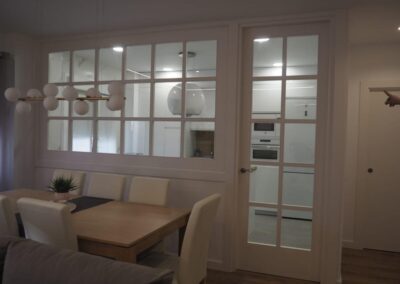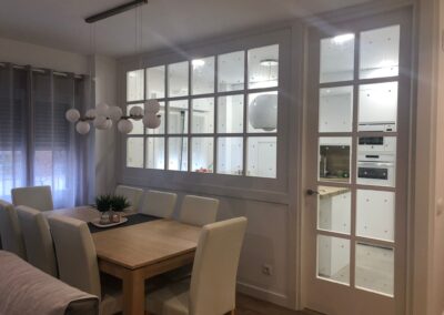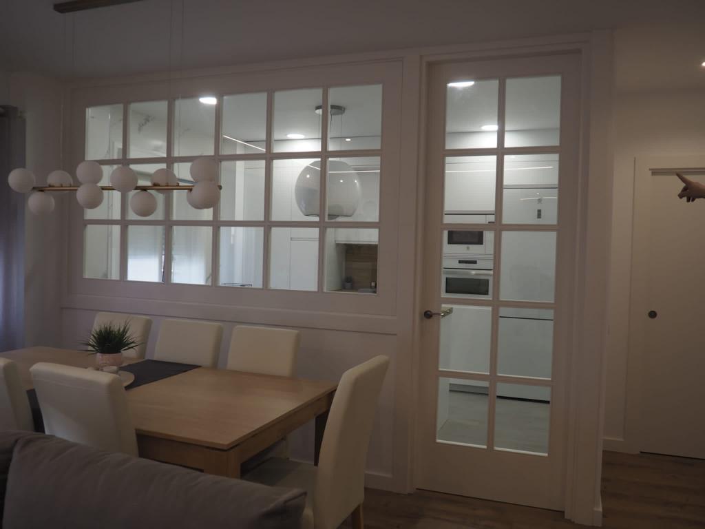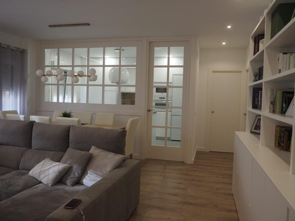 Nos encanta hacer trabajos a medida, de hecho, son nuestra especialidad. Estos clientes vinieron con la idea de hacer un cerramiento a medida al más modo «revista el mueble» y quisimos ayudarle a diseñar esa separación entre cocina y salón.