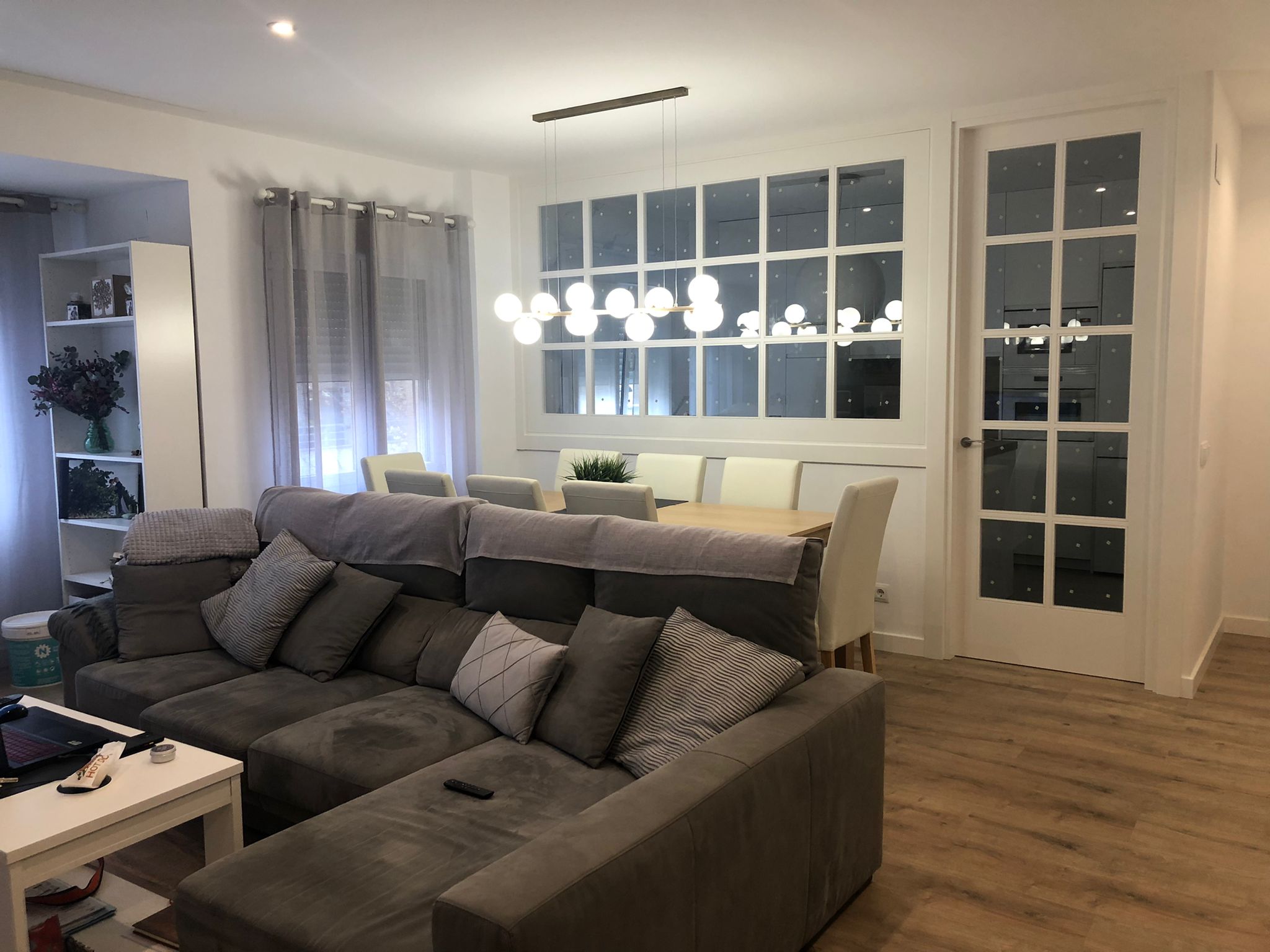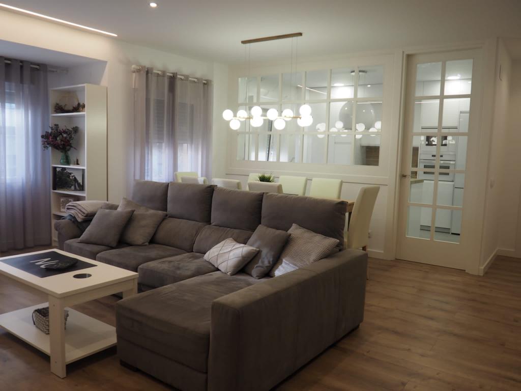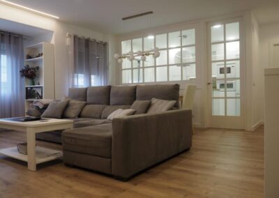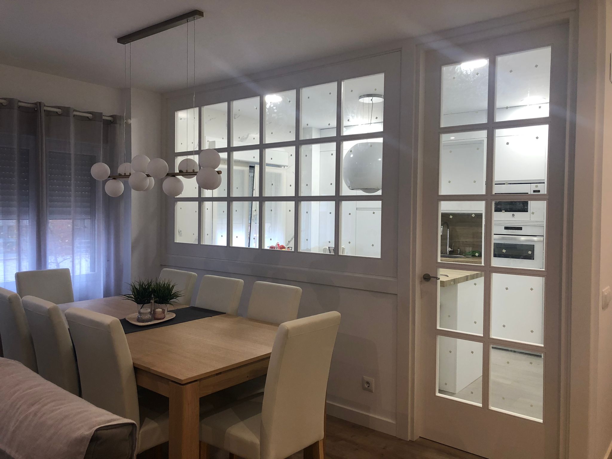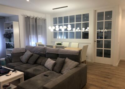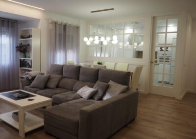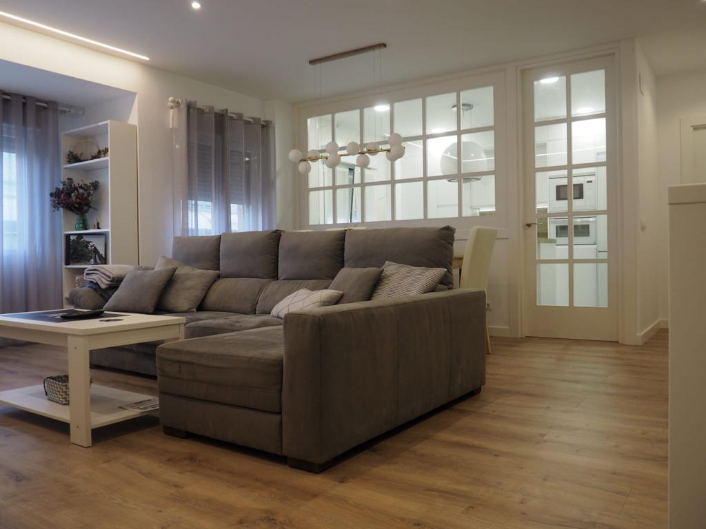Nos encanta hacer trabajos a medida, de hecho, son nuestra especialidad. Estos clientes vinieron con la idea de hacer un cerramiento a medida al más modo «revista el mueble» y quisimos ayudarle a diseñar esa separación entre cocina y salón.