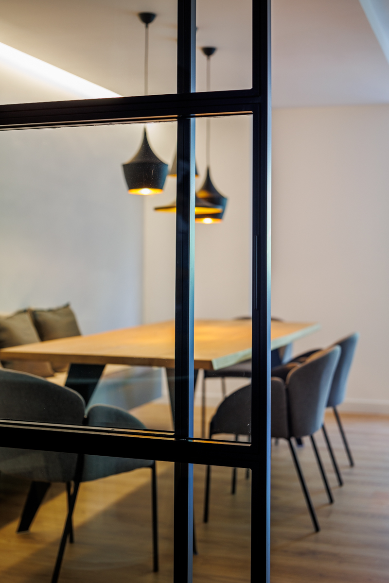 El contraste con el resto de la carpintería lacada en blanco de la vivienda, hizo de su diseño un hogar elegante, puro y sumamente delicado.