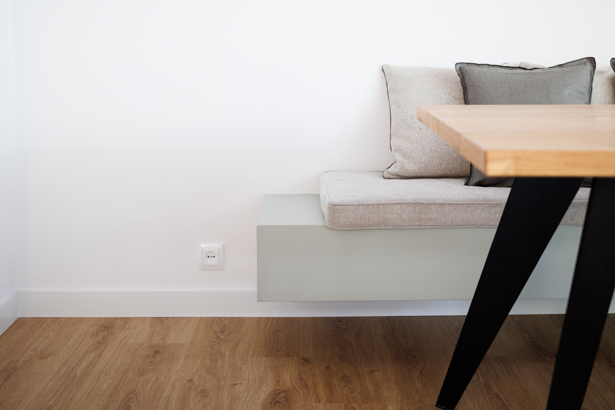 Destacar también, la bancada volada que diseño https://www.rocioramirezdiaz.com/ y que pese a su complicada instalación se ha convertido en zona singular de la vivienda y elemento a destacar en las visitas.