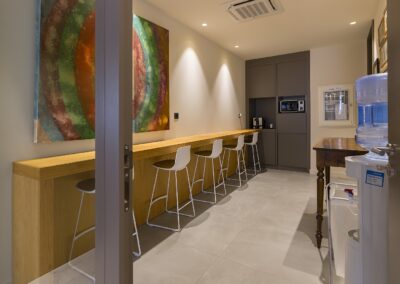 Fuimos los encargados de fabricar todos los elementos de madera que pueden apreciarse en las imágenes. Desde mobiliario, mostrador, panelados, puertas, baños etc.