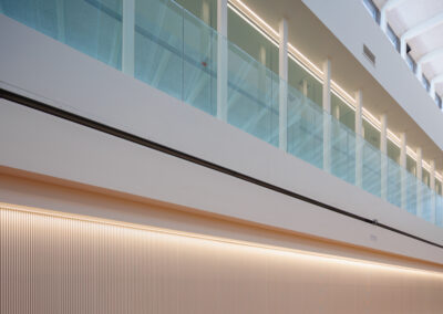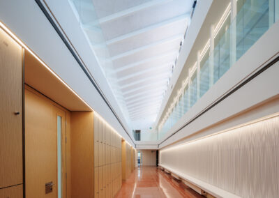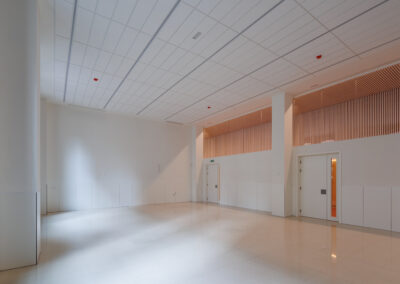 La participación de Spigogroup en el proyecto ha sido muy importante, al poder acometer de manera simultánea intervenciones en suelos, paredes o techos, con revestimientos de madera, puertas técnicas de madera o mobiliario especial hecho a medida como cabinas o taquillas fenólicas.
