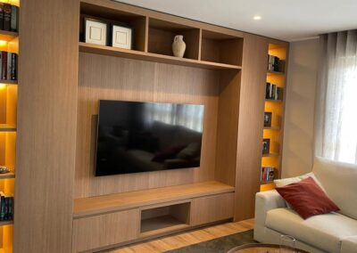 De la mano de los clientes diseñamos, fabricamos e instalamos esta pieza de su salón completamente a medida y cubriendo las necesidades que los clientes trasmitían.