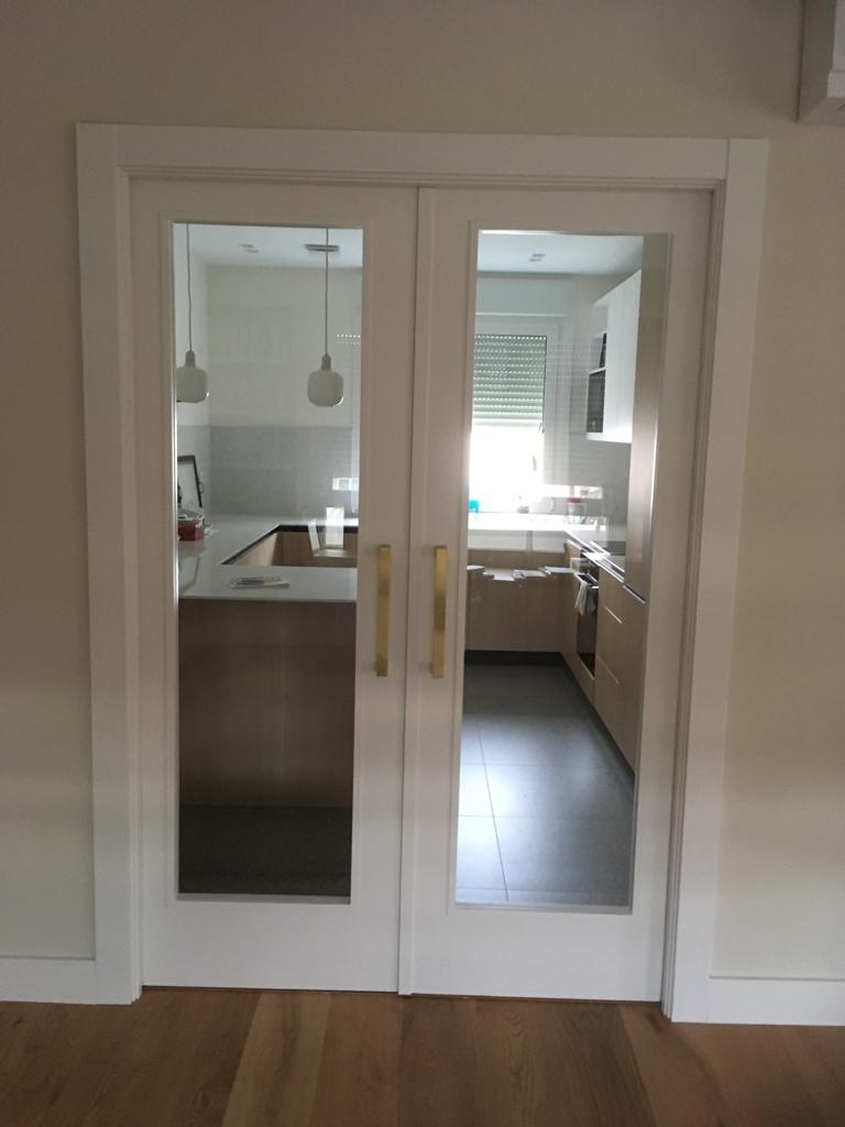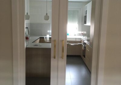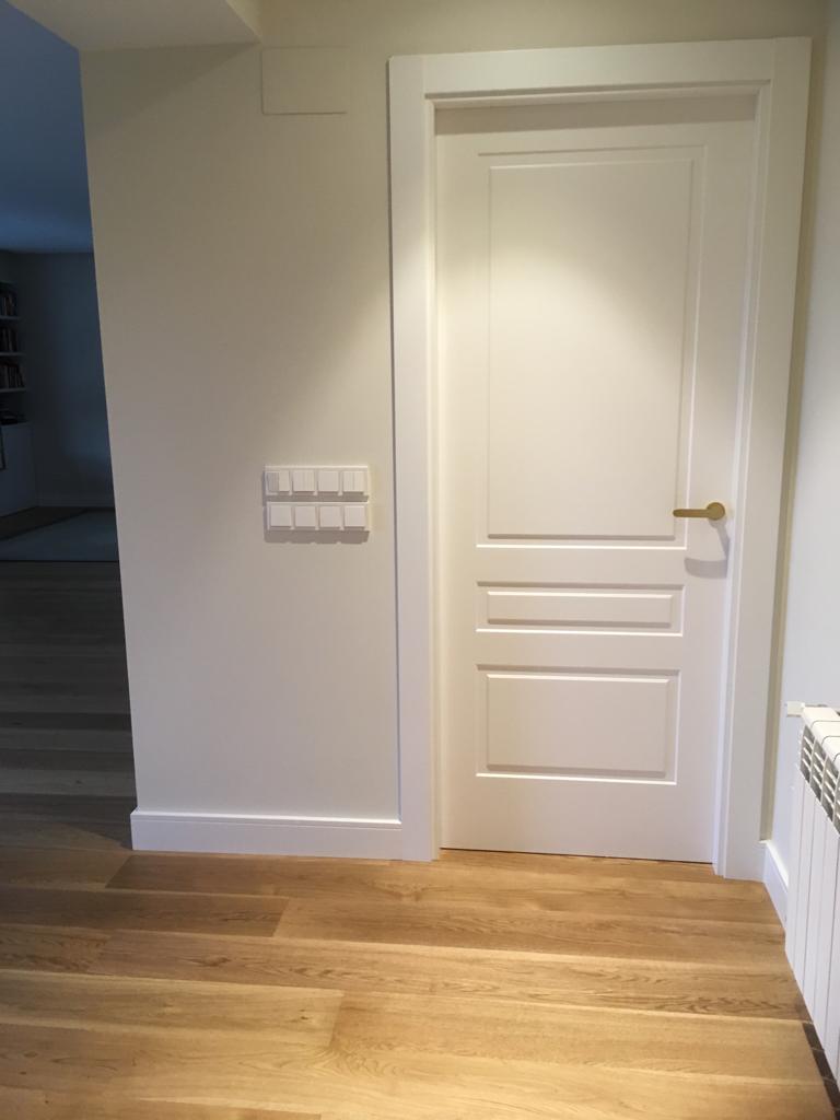 Apostamos por unas puertas de fabricación propia, altura especial 240 y mecanizadas a medida con molduras en control numérico
